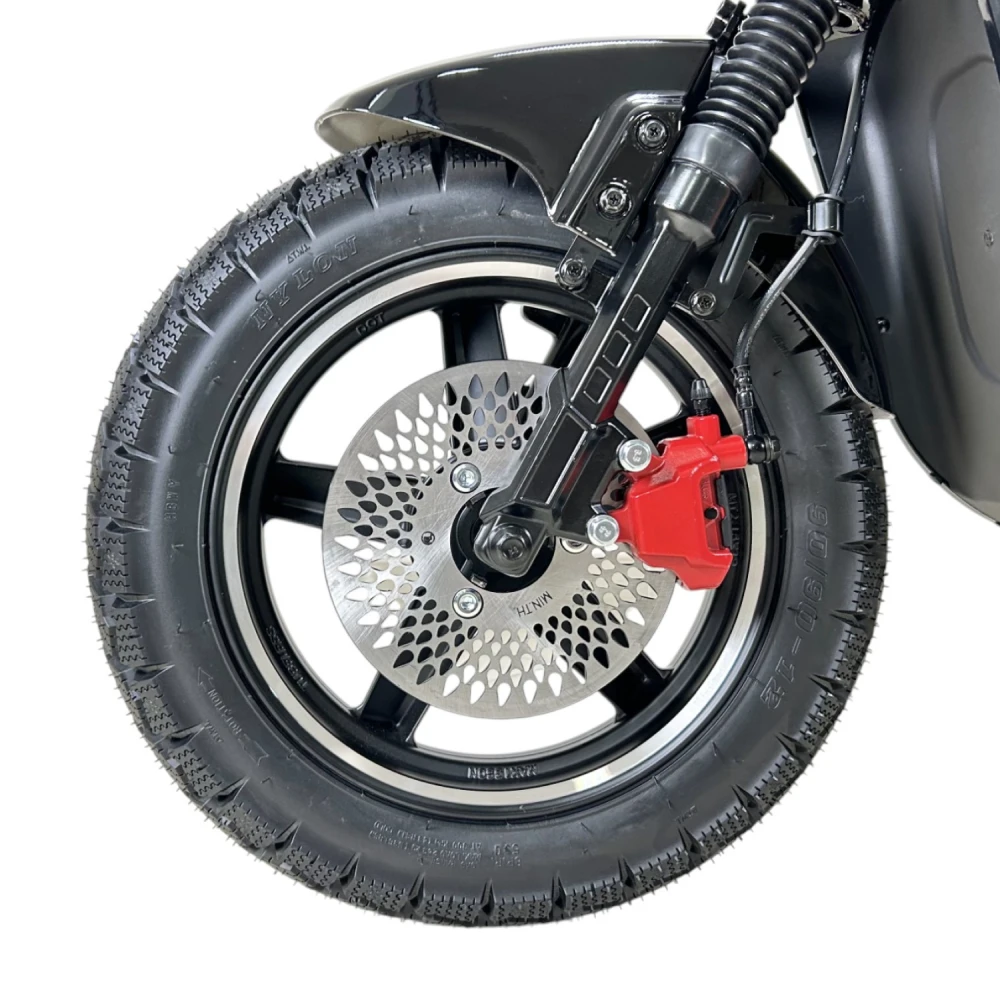 Электроскутер GT U2 PRO в черном исполнении — это сочетание мощности и элегантности. Двигатель 1500W и максимальная скорость 70 км/ч позволяют уверенно передвигаться по дороге. С запасом хода до 70 км и аккумулятором 30Ah, вы можете наслаждаться длительными поездками без подзарядки. Скутер поддерживает нагрузку до 160 кг, что позволяет взять с собой пассажира, для которого предусмотрены отдельные подножки. Дисковая гидравлическая тормозная система обеспечивает надежное торможение, а подвеска спереди и сзади сглаживает неровности дороги. Большая фара освещает путь в темное время суток, а современный дизайн подчеркнет ваш стиль.