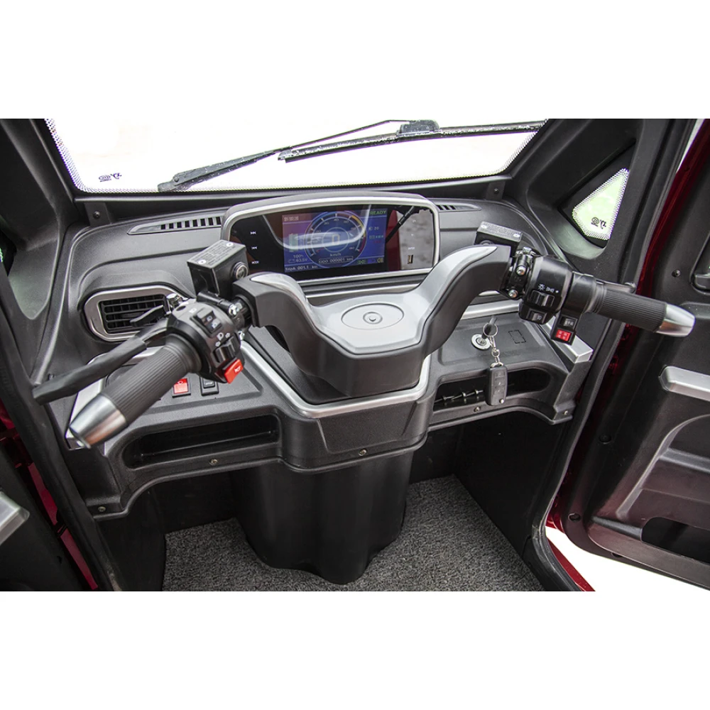 Максимальная скорость 20-25 км/час легко достигается благодаря мощности двигателя 1000 Вт. Улучшенная тормозная система позволяет быстро остановиться в экстренных ситуациях. Модель компактна, пользователю не стоит беспокоиться о поиске места для парковки. Улучшенные показатели грузоподъемности техники позволяют доставлять грузы массой 200 кг. Широкие колеса с мощными протекторами придают транспортному средству повышенную проходимость. Яркие светодиодные фары хорошо освещают дорогу в темное время суток.