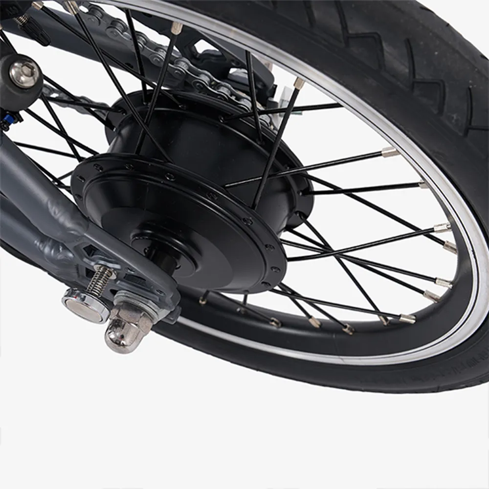 Dahon K-Feather 16" Grey — сверхлёгкий складной электровелосипед весом всего 12 кг с 16-дюймовыми колёсами, предназначенный для компактных городских поездок на расстояния до 40 км на одном заряде.