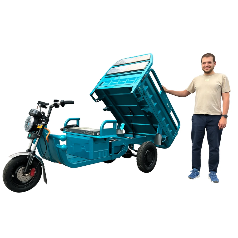 IKINGI C-06 — современный грузовой электротрицикл с выдающейся дальностью до 90 км и максимальной скоростью до 50 км/ч. Модель сочетает сбалансированную производительность двигателя 1500 Вт, надёжные дисковые гидравлические тормоза и универсальную багажную платформу 150×100×44 см. Идеально подходит для частных владельцев, фермеров, логистических служб и курьерских компаний, которым нужен надёжный и долговечный электрокар с повышенной дальностью и хорошей управляемостью. Отличное решение для малого бизнеса и скоростной доставки.