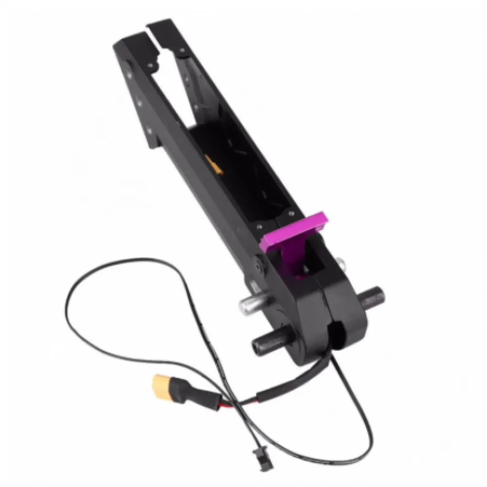 Механизм складывания электрического самоката в сборе со шнуром питания для устройства. Используется обычно для защиты контроллера. В механизм встроен контроллер на 36 В, что позволяет преодолевать длинные расстояния и неровности на дорогах.